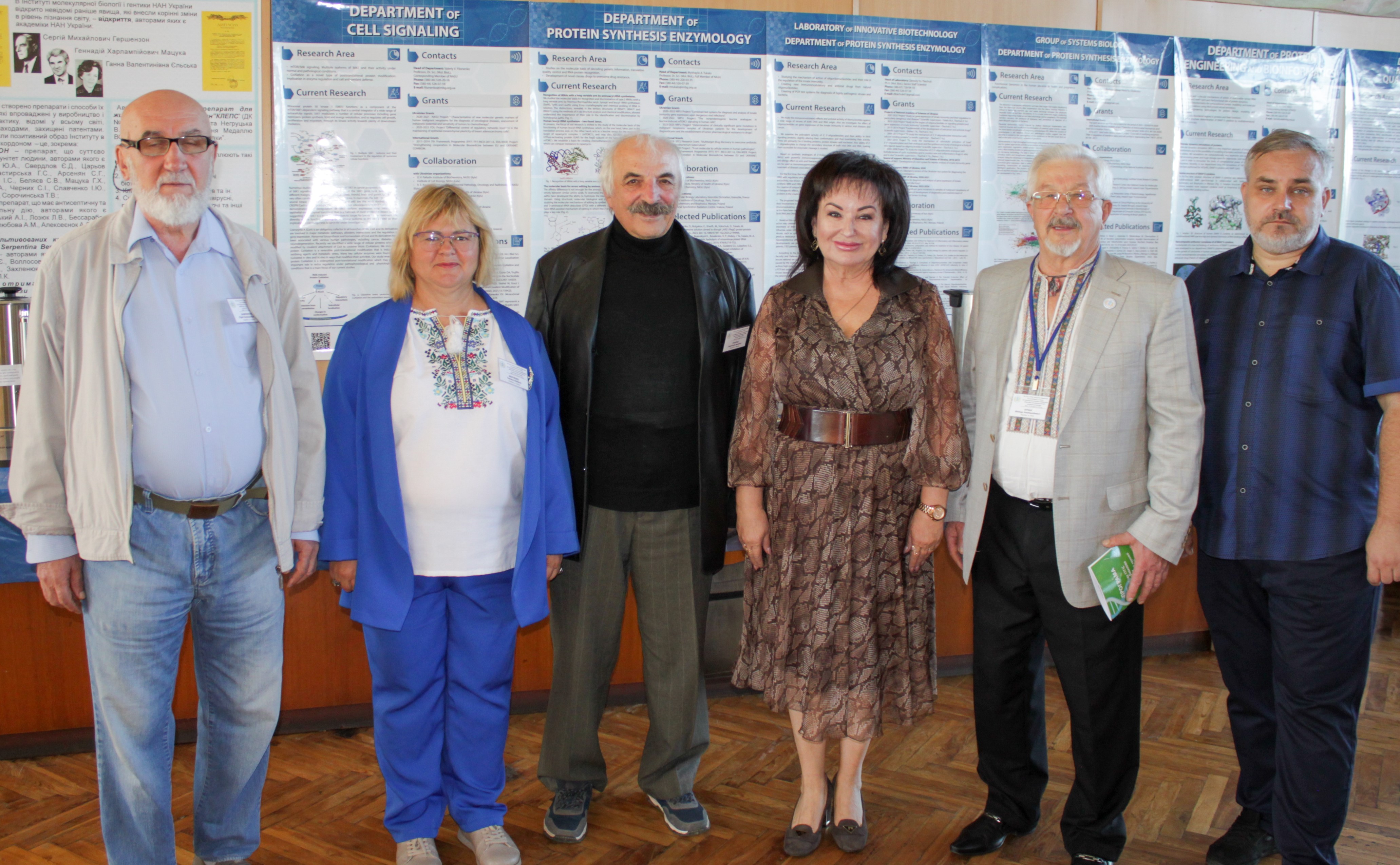 Зліва направо: віце-президент НААН, академік НААН Микола Роїк; директор ІМБГ НАН України, академік НАН України Михайло Тукало; президент УТГіС, член-кореспондент НАН України Віктор Кунах, учений секретар УТГіС, кандидат біологічних наук Анастасія Голубенко; член Президії НАН України, в. о. академіка-секретаря Відділення біохімії, фізіології та молекулярної біології НАН України, академік НАН України Сергій Комісаренко; член Президії НАН України, академік-секретар Відділення загальної біології НАН України, академік НАН України Володимир Радченко.